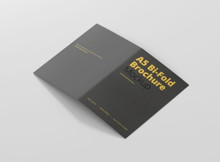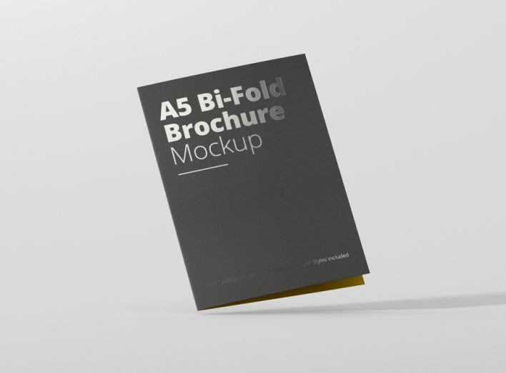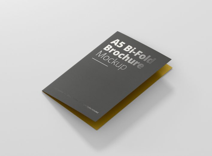 11 Photorealistic high quality mockups of a bi-fold brochure